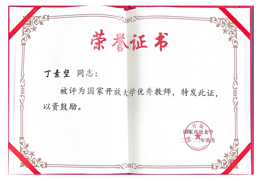 2022年度国家开放大学优秀教师评选活动于近日结束,华球(中国)官方数字财商学院丁素坚和建邺学习中心张草两位老师荣获“国家开放大学优秀教师”荣誉称号。