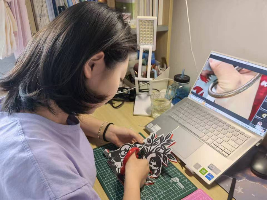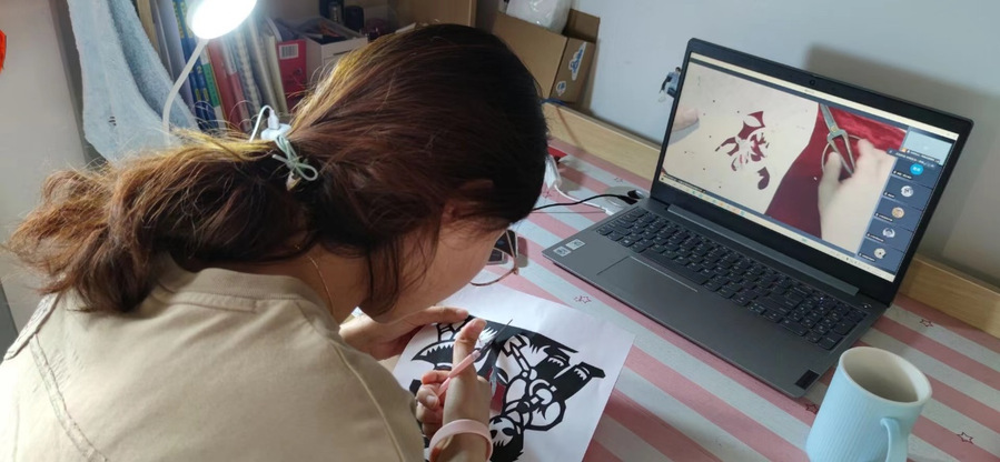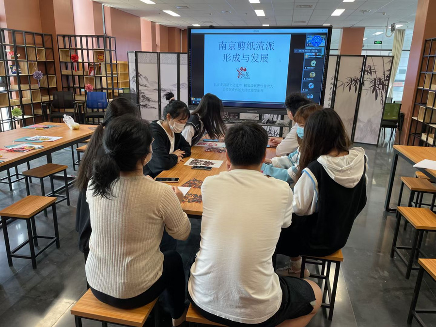 5月9日中午,由“东西物语手工社”承办的“喜迎二十大,最美是青春”剪纸艺术体验活动在该校刚刚建成的传统文化与公共艺术教育基地举办。活动特别邀请到国家级非物质文化遗产——“金陵剪纸”张氏流派的第五代传承人张钧老师全程指导,采用“云端授课”与“现场体验”相结合的方式开展。剪纸是我国优秀传统文化的重要组成部分。南京剪纸是联合国教科文组织认定的“人类口头和非物质文化遗产”,在我国剪纸艺术中独树一帜。近200名同学通过视频连线全程参与了本次活动,20余名同学在教育基地现场体验了剪纸艺术的魅力。
