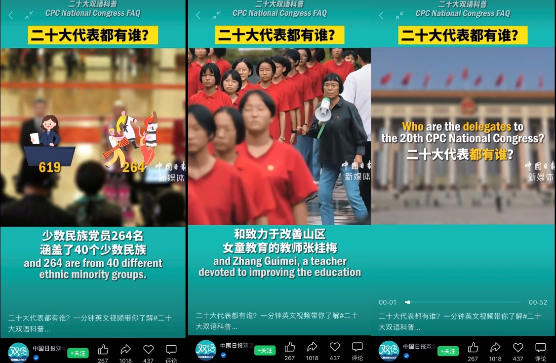薛熙蕾老师向学生积极推送党的二十大相关双语素材,供学生开展自主学习,要求大家结合所参加的班团活动展开思考和交流,并在课堂上组织词汇练习和课堂讨论。