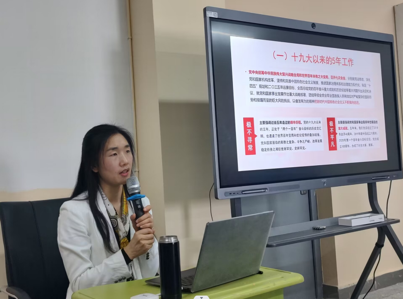 许红梅以《守正创新团结奋进——学习贯彻党的二十大精神》为题,从党的二十大主题及主要成果、过去五年工作和新时代十年伟大变革、深刻把握马克思主义中国化时代化、以中国式现代化实现中华民族伟大复兴、全面建设社会主义现代化国家的目标任务、直面风险坚持党的全面领导、全面从严治党等六个方面,为大家作了系统生动、深入浅出的讲解。报告精彩纷呈、内容丰富,体现了较高的专业性和理论性。