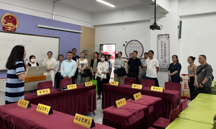 此外,学员们还探访了法治教育实训室及国防教育展厅。法治教育实训室内提供了模拟法庭、服装等逼真道具,学员可通过社团活动强化法治意识,努力成为德法兼修时代新人。强国必先利器,在国防教育展厅内,冷雅琳老师为学员们介绍习近平强军思想及强军十年的累累硕果。学员们仔细观摩了我国自主研发的先进武器歼20、山东舰及东风洲际导弹模型,深刻感知强国必先强军,强军才能国安,为我国日益强大的国防硬实力所震撼,浓浓自豪感油然而生。