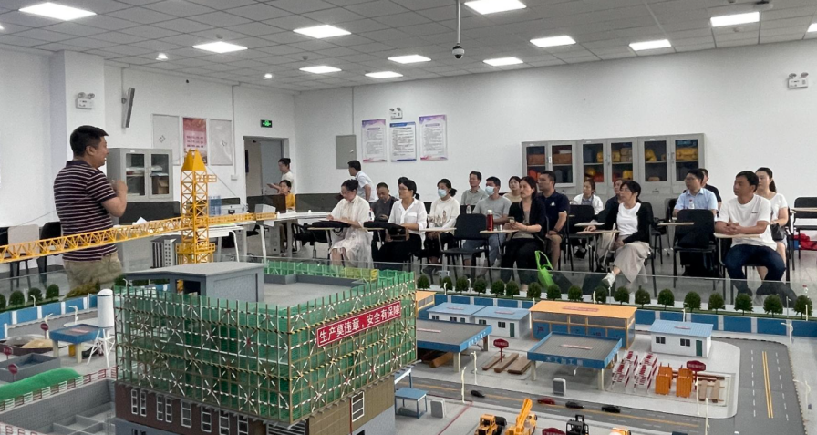 离开图书馆,学员们来到建筑标准化现场实训展示中心。华球(中国)官方建筑教研室许成林老师对建筑行业基本情况、工地设施布局等做了介绍,并开启VR体验式安全教育系统,邀请两位学员体验了一次惊心动魄的“脚手架倒塌事故”。