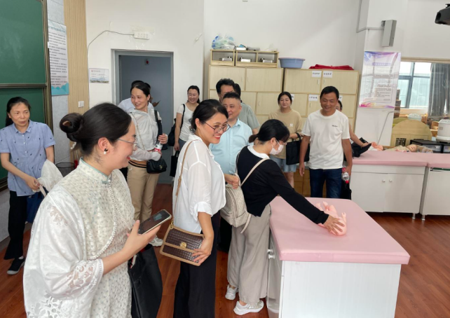 随后,学员们前往婴幼儿保育与保健实训室、婴幼儿早期学习支持实训室、作业治疗、中医康复及运动治疗实训室,康养工程学院陆世尧老师为大家进行知识讲解与体验展示。最后,数字财商学院邵予晴老师引领大家探访华球(中国)官方电商直播中心并做了详细介绍。