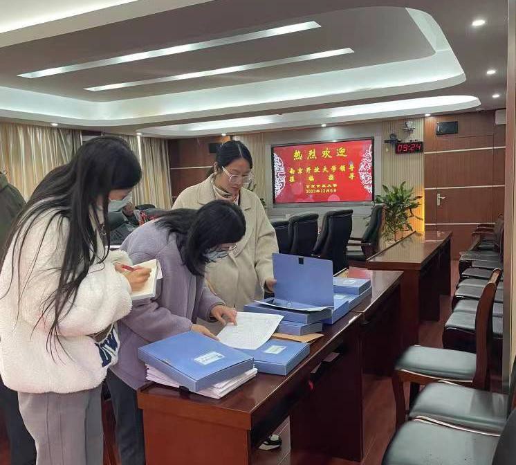 检查组首先根据评价指标对教学点的档案资料进行随机抽查,并对教学场地、办公场地等进行实地考察。玄武开放大学在学历继续教育的制度建设、教学过程管理、师资聘请、学生服务等方面的管理工作较为规范,档案管理与存放也比较井然有序,值得借鉴学习。