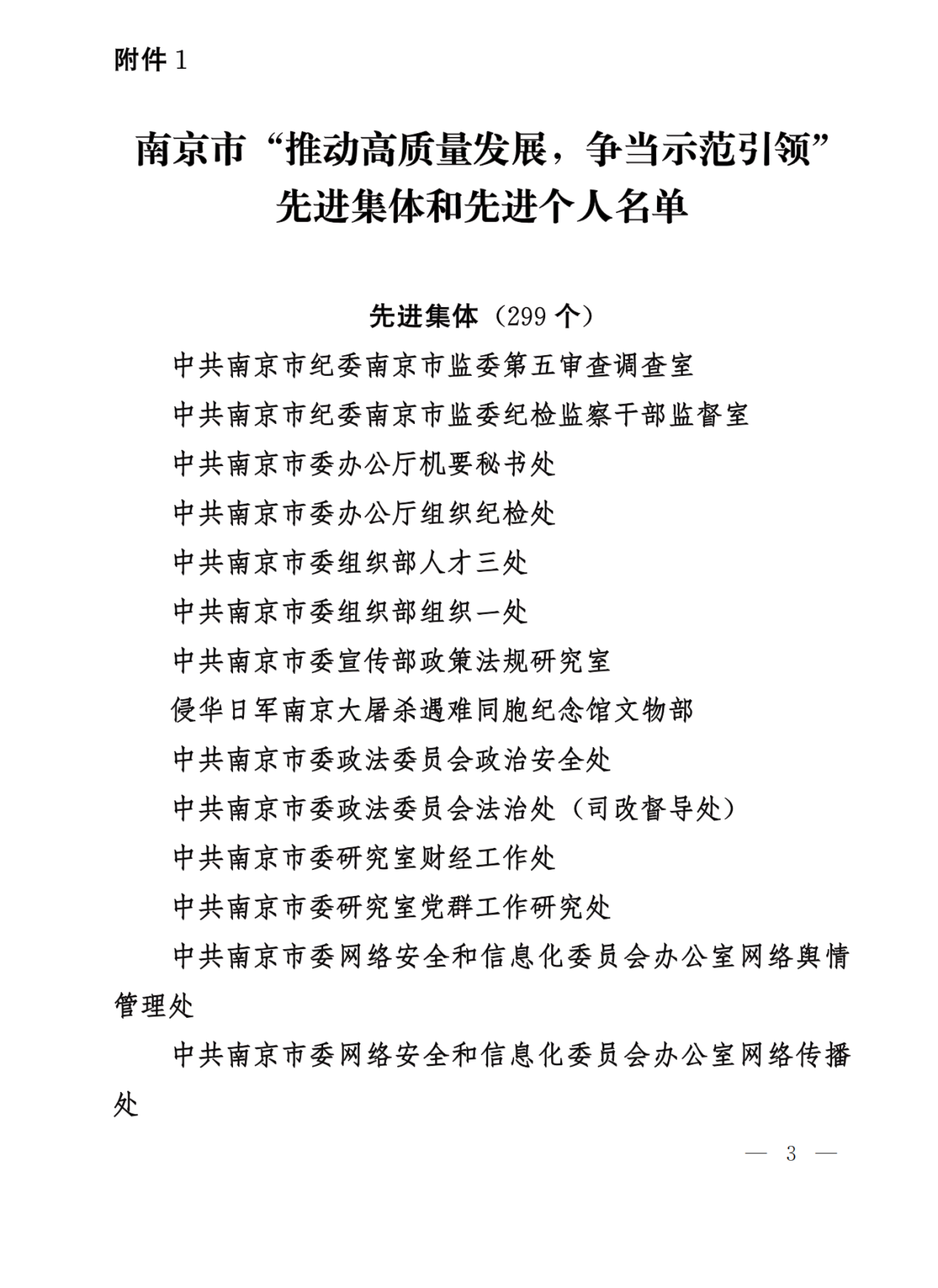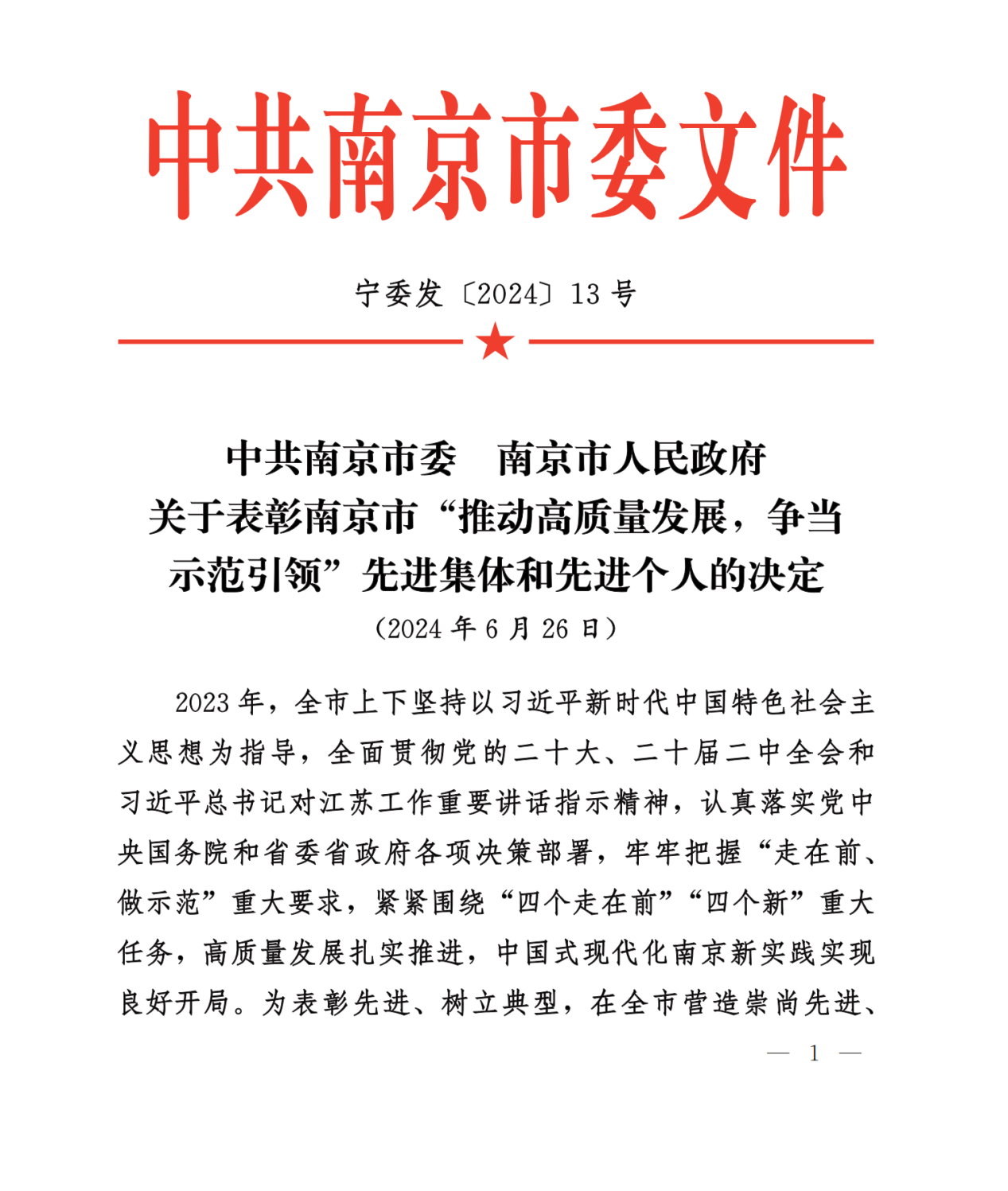 去年一年,全市上下牢牢把握 “走在前、做示范”重大要求,紧紧围绕“四个走在前”“四个新”重大任务,高质量发展扎实推进,中国式现代化南京新实践实现良好开局。为选树我市各部门、各条线和各行业中先进典型事迹,充分发挥表彰工作的导向性、权威性和表彰对象的示范引领作用,市委、市政府自2023年底开始开展推选“推动高质量发展,争当示范引领”先进集体和先进个人工作。各单位提交初步推荐意见,意见上报后市协调小组办公室对全市拟推荐对象进行汇总初审,统一征求市公安部门意见后,向各区、市各有关单位反馈初审结果,最终授予299 个集体“南京市‘推动高质量发展,争当示范引领’先进集体”称号,208名同志 “南京市‘推动高质量发展,争当示范引领’先进个人”称号。