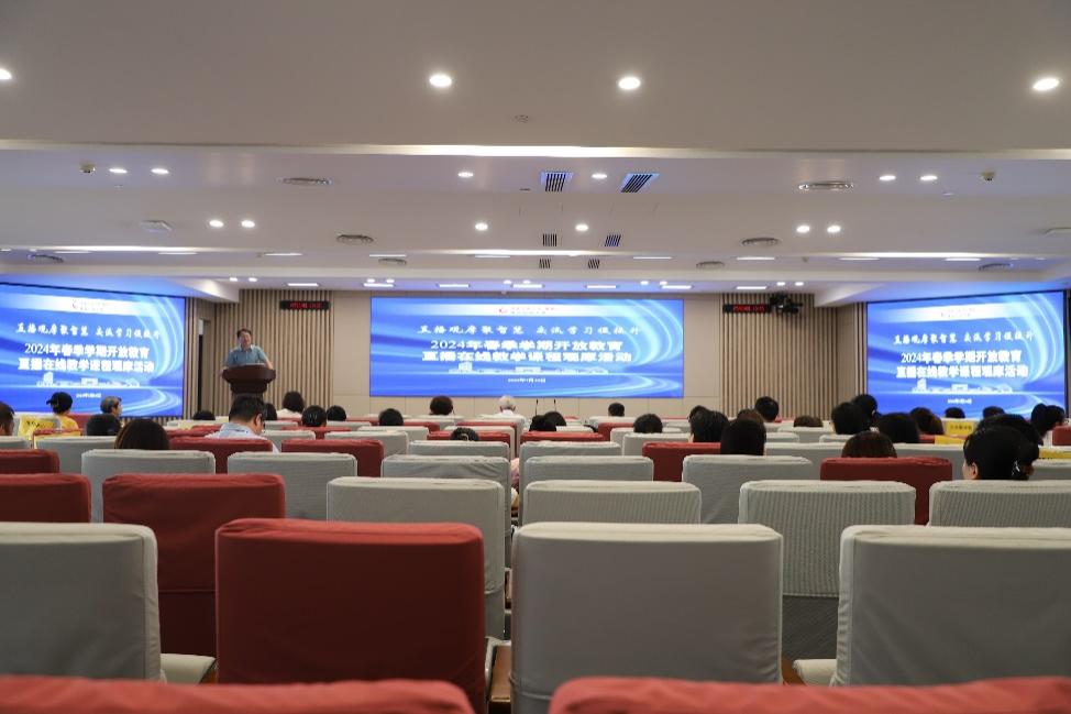 7月10日下午,开放教育专题培训在新街口校区六楼多功能厅进行,开放教育专业责任教师、课程责任教师,学习中心教学管理人员及辅导教师参加培训。参培老师首先集中观摩开放教育直播在线教学课程,开放教育督导专家随后点评直播教学课程亮点与特色,提出直播在线教学改进建议,之后交流开放教育直播在线教学存在问题,提出具体工作要求,研讨直播在线教学质量提升改进措施,陈正宇副校长做了总结发言。