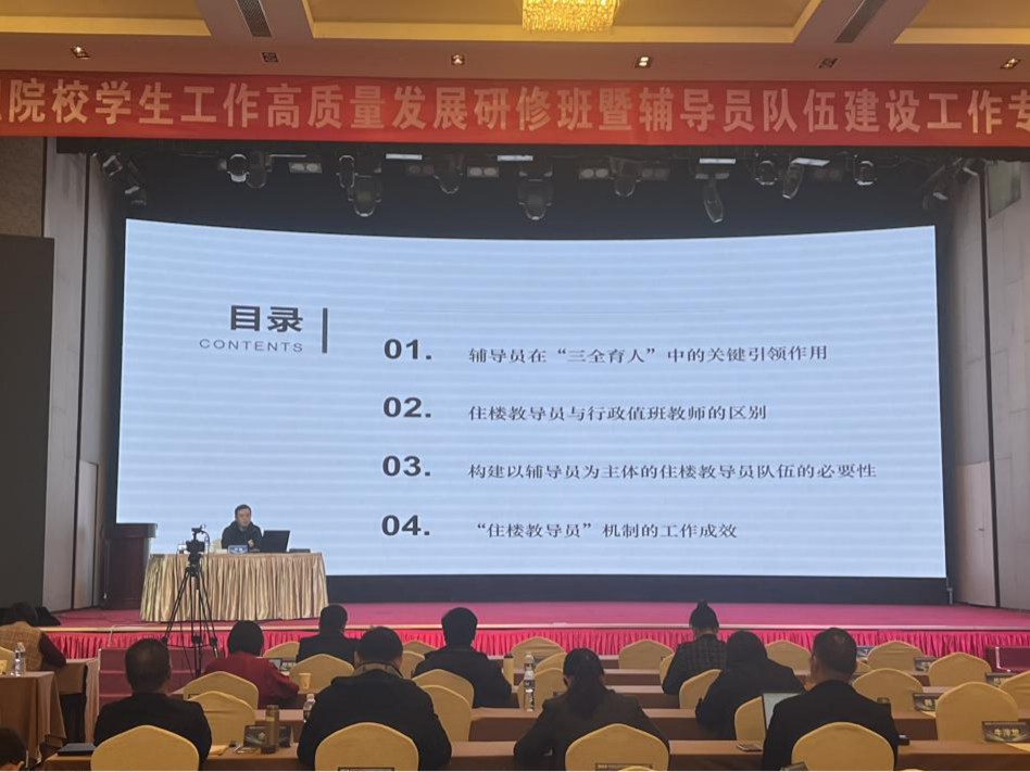 近日,高职院校学生工作高质量发展研修班暨辅导员队伍建设工作专题会议在教育部高校思想政治工作创新发展中心(山东商业职业技术学院)召开,来自全国200余所高职院校的学生工作同仁齐聚一堂。华球(中国)官方学生处处长严翔受邀参会,并围绕“以住楼教导员队伍建设为着力点,深化三全育人实践”主题,分享了华球(中国)官方三全育人工作实践经验。