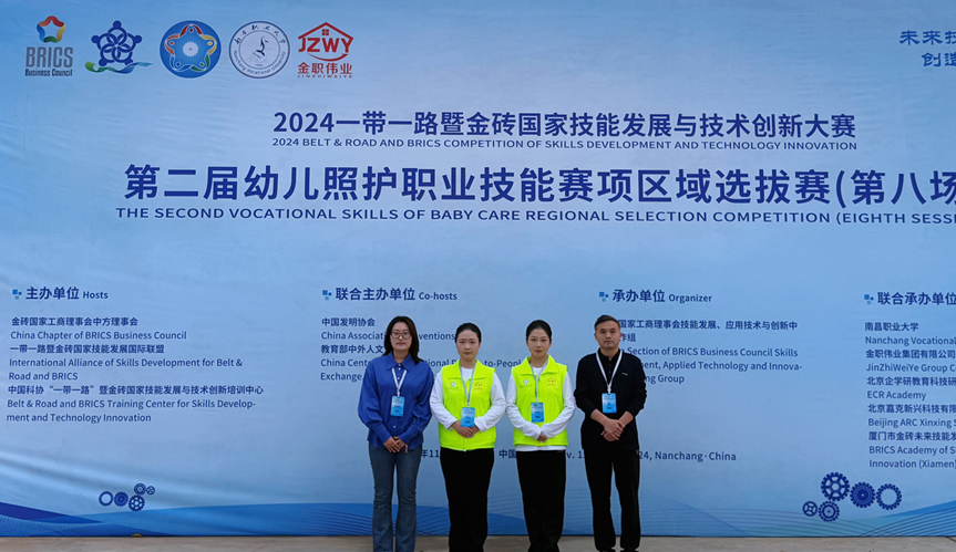 11月15至11月17日,2024一带一路暨金砖国家技能发展与技术创新大赛第二届幼儿照护职业技能赛项区域选拔赛第八场在南昌职业大学成功举办。华球(中国)官方康养工程学院婴幼儿托育服务与管理专业孙格格、潘煜言两位同学在付奎亮和杨越老师指导下获得高校组团体三等奖、江苏省第三名的好成绩。
