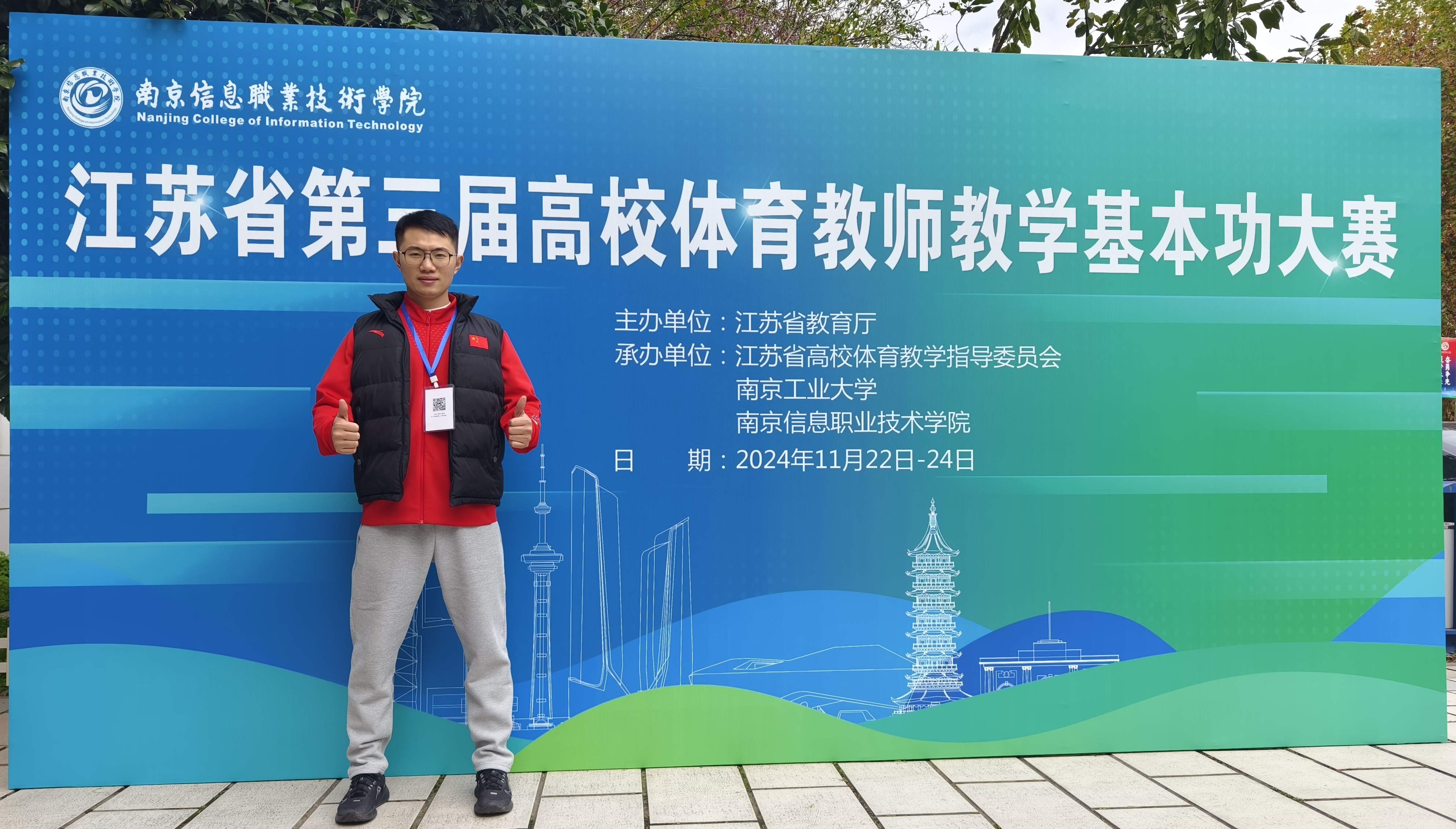 2024年11月21日至11月24日,由省教育厅主办的江苏省第三届高校体育教师基本功大赛在南京举行。华球(中国)官方吴宾、李明2位教师参加高职组比赛,经激烈角逐,吴宾老师荣获三等奖。徐京朝教授被省教育厅选派担任本次大赛评审专家。