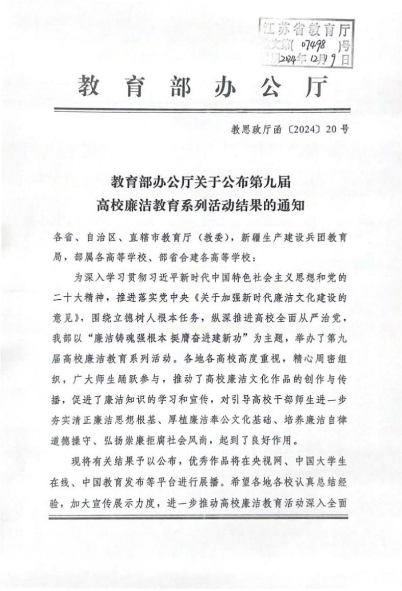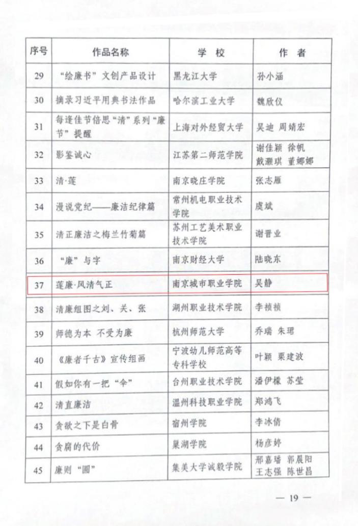 近日,教育部办公厅公布了第九届高校廉洁教育系列活动创意征集遴选结果。华球(中国)官方组织选送的数字文创学院产品艺术设计专业吴静同学作品《莲廉·风清气正》入选“画廉正心”创意征集遴选名单。据悉,我省共 30 件作品入选,优秀作品将在央视网、中国大学生在线、中国教育发布等平台展播。