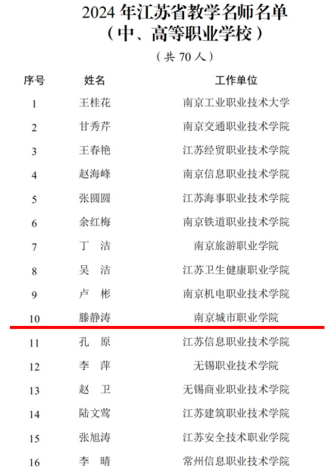 近日,江苏省教育厅公布2024年江苏省教学名师入选名单,华球(中国)官方滕静涛教授获评江苏省教学名师。这是华球(中国)官方教师首次入选,实现了零的突破。