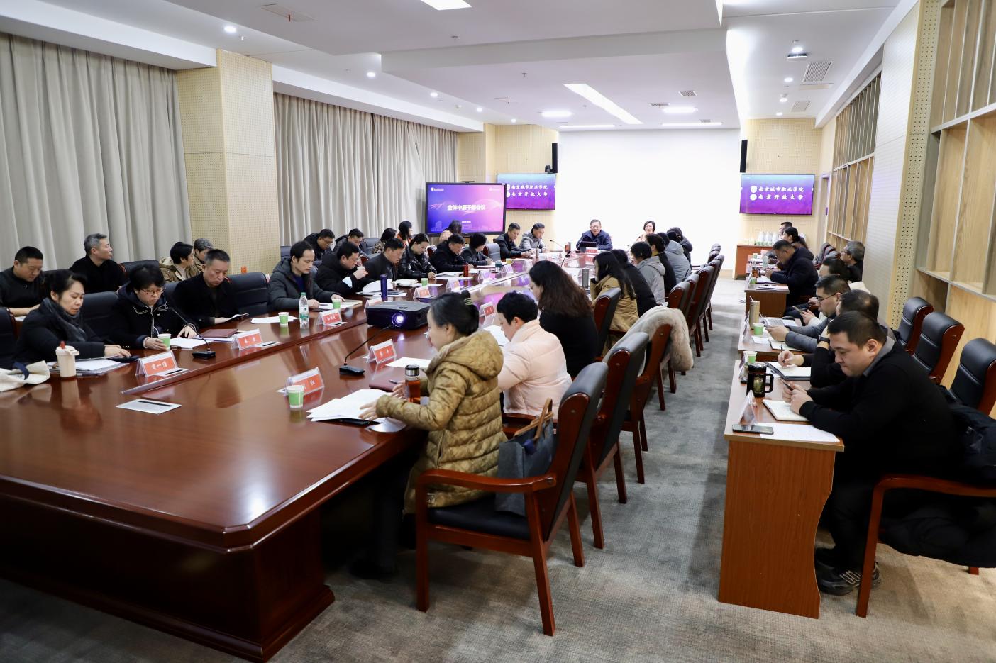 1月8日,学校在溧水校区科创楼召开全体中层干部会议,回顾总结2024年工作成效,部署2025年工作重点。学校党政领导班子及全体中层干部参加会议,会议由校党委书记孙朝晖主持。
