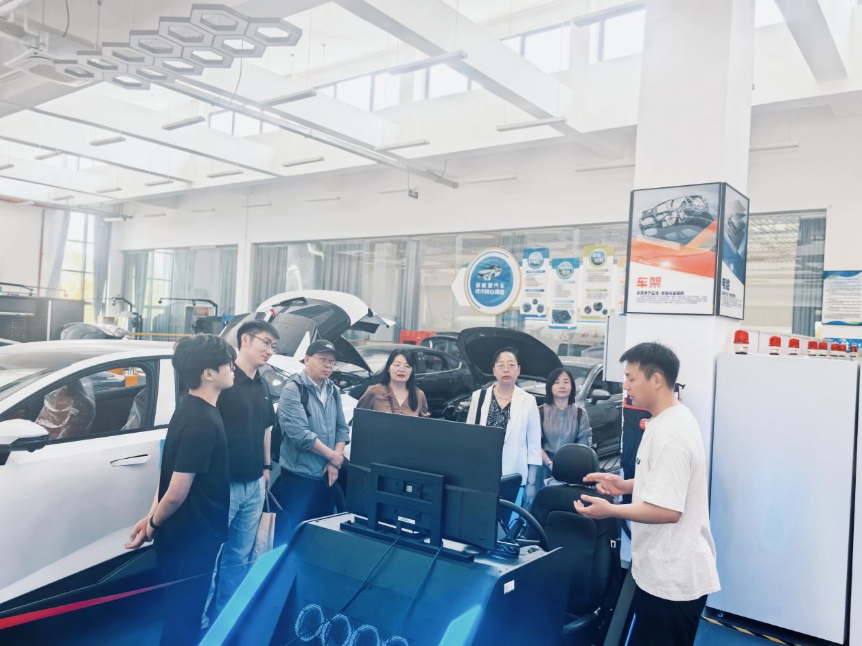 蔡春燕一行还参观了智能工程学院新能源汽车实训工厂、康养工程学院健康管理实训室、数字财商学院电商直播中心、数字文创学院技能大师工作室等。