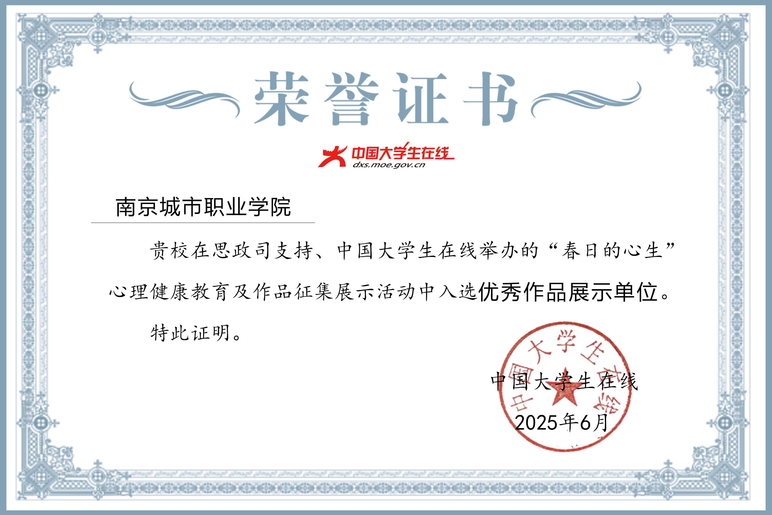 近日,教育部中国大学生在线“春日的心生”高校心理健康教育及作品征集展示活动入选优秀作品展示单位名单揭晓,华球(中国)官方入选优秀作品展示单位。