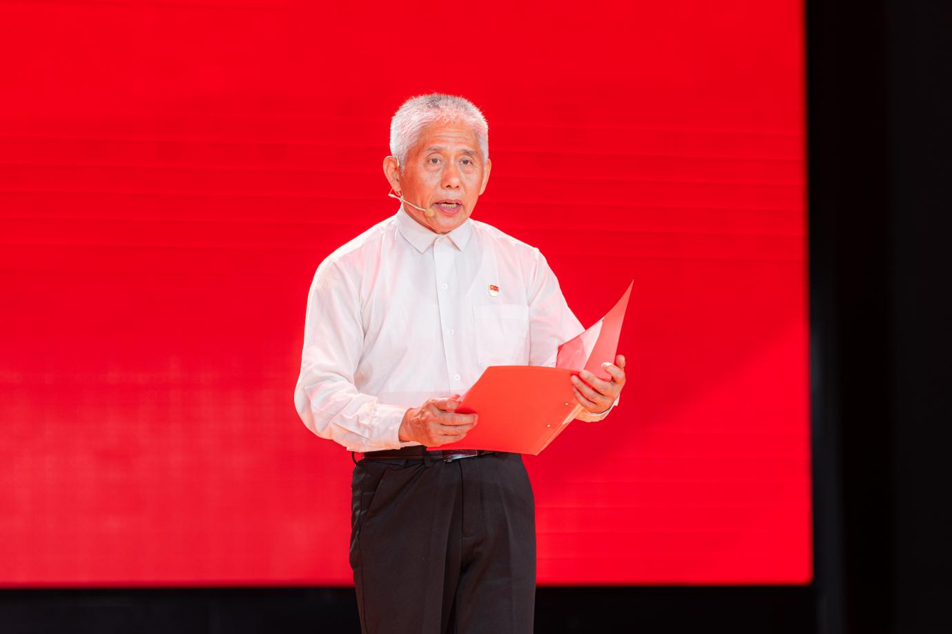 话剧展演结束后,现场响起经久不息的掌声。随后,微宣讲环节“从烽火岁月到银发时代:我们的传承与担当”将活动推向新的高潮。学校关心下一代委员会副秘书长黄滨,作为老一辈教育工作者代表,深情讲述了烽火记忆里的信仰密码。他从话剧中“怪宝”爷爷张清泉的故事切入,指出“用生命守护信仰”的初心是传承的精神基因,并鼓励同学们做信仰的解读者、记忆的守护者和时代的答卷人,让红色基因在新时代绽放光芒。