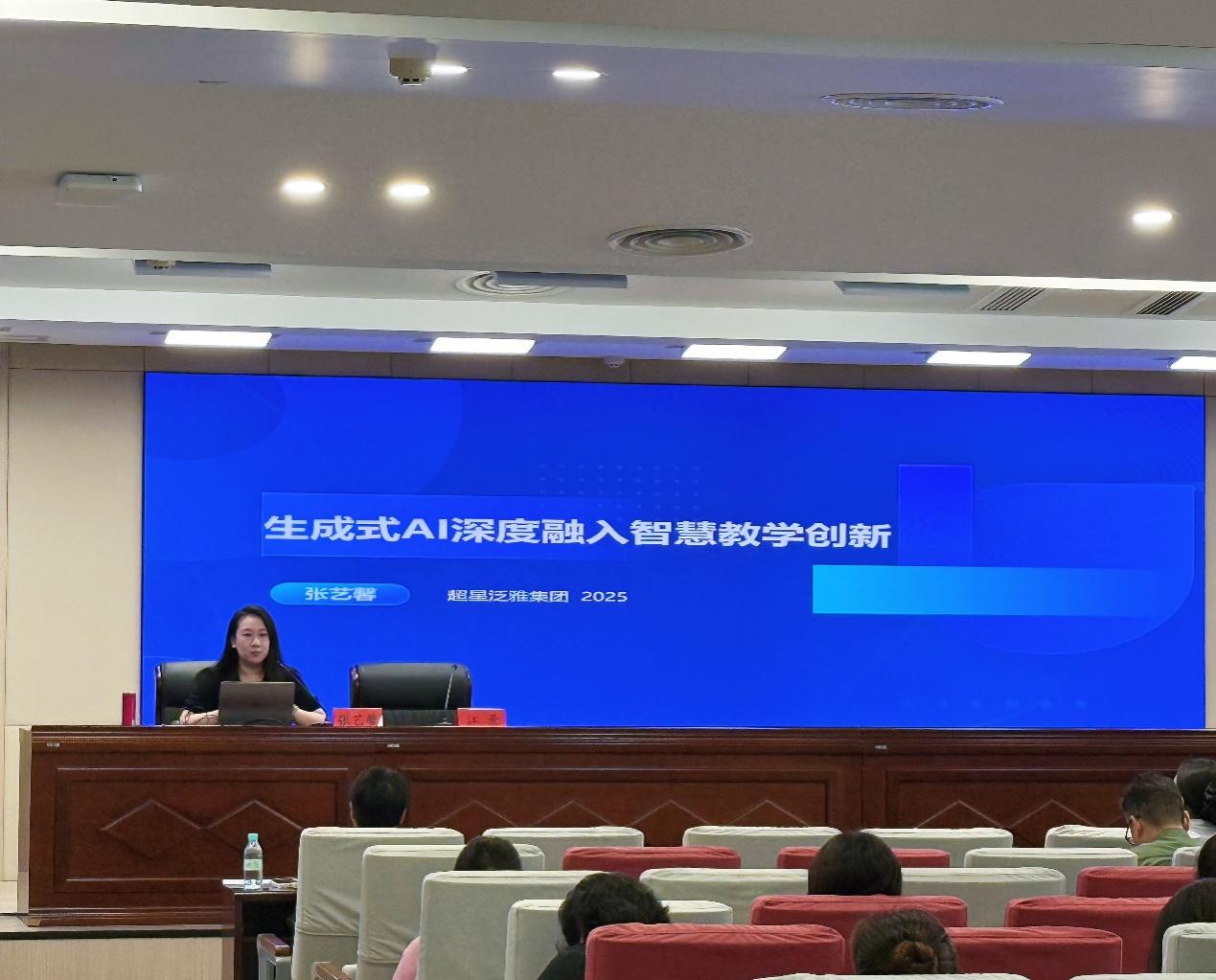 7月10日上午,超星泛雅集团江苏课程研究中心教学设计总监张艺馨讲授“智慧课程建设”专题培训。她解读了人工智能助力教育变革的政策背景,指出其为教学创新带来的新契机。张总监运用系统、科学的教学理论,结合丰富的实际案例,对智慧教学设计的理念、原则和流程进行了详细阐述。她分享了超星平台智慧课程快速建设经验,如创建各类图谱融入思政教育、展示AI实践情景教学创新方法与案例等。