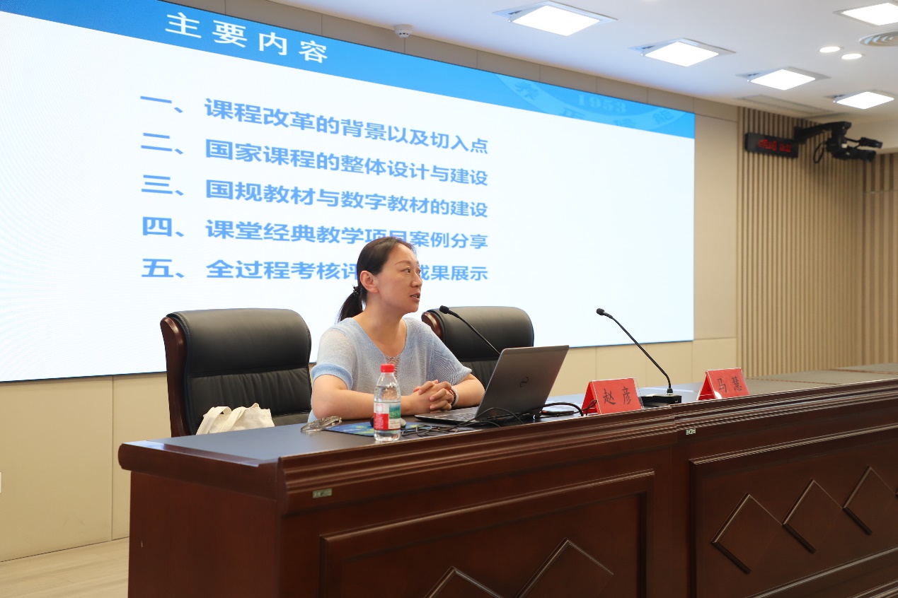 7月10日下午,江苏信息职业技术学院赵彦教授开展“教育数字化背景下职业院校课程与教材建设及实践”讲座。她从课程改革背景及切入点入手,强调教学改革要围绕岗位需求和学生发展精准进行。她重点阐述了如何构建科学合理的课程体系,通过具体教材案例,向教师展示了如何编写融入思政元素的规划教材与数字教材。