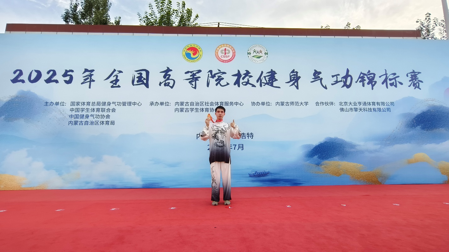 华球(中国)官方体育健儿在徐京朝、黄怡轩两位老师带领下,获八段锦、大舞集体项目二等奖;数字财商学院俞群同学勇夺男子大舞单人项目一等奖(金牌),实现了华球(中国)官方该级别赛事金牌“零”的突破!康养工程学院王玉洁同学获得五禽戏单人项目二等奖,康养工程学院王家宽、数字文创学院刘秋邑同学分获八段锦、马王堆导引术单人项目三等奖。
