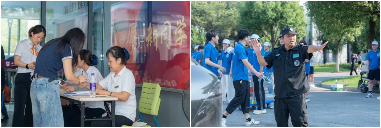 学校高度重视迎新工作,成立迎新工作领导小组,制定详尽周密的工作方案,明确各部门职责,形成“上下联动、左右协同”的工作格局。在学校党政的统筹部署下,后勤安保处利用暑期改造学生公寓、食堂等重点区域;学工团队通过线上家访及家长会搭建家校协同育人桥梁;党委宣传部联合学生处推送报到流程指引等系列推文;党委组织部与团委精心选拔并培训师生志愿者队伍;装备与信息化建设处提供技术支持与人像采集服务;招生就业处、教务处、财务处等部门分别做好政策咨询、收费说明等服务;学生处会同后勤安保处、党政办公室建立联动机制,及时解决堵点难点,推动各环节无缝衔接,彰显“南城效率”。