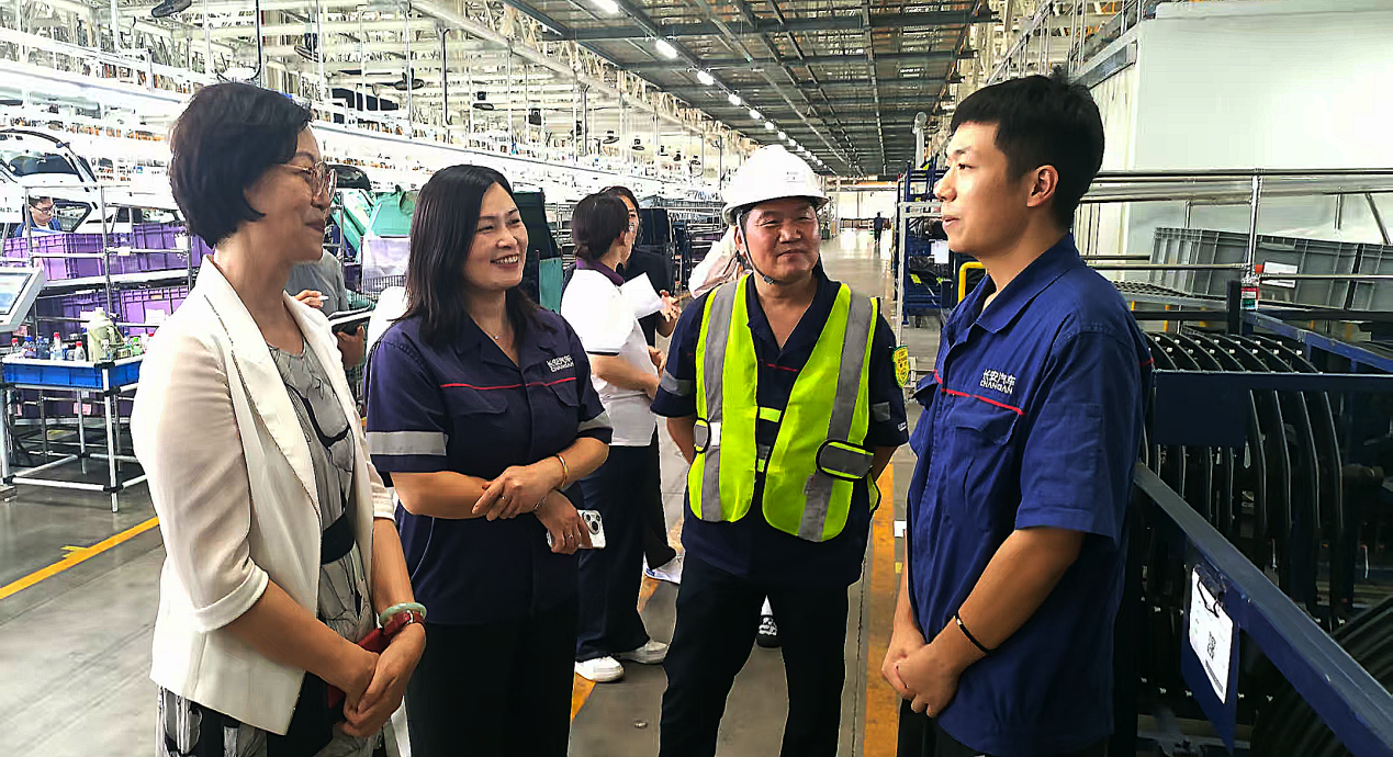 9月17日下午,校党委副书记、校长倪杰,副校长陈正宇等一行9人走访南京长安汽车有限公司,看望首届订单班实习学生,研讨进一步加强校企合作事宜。南京长安党委副书记、纪委书记、工会主席席庆芝,南京长安总装区域经理吕京,长安汽车团委资深干事陈松柏,南京长安HRBP专员徐晶等热情接待了倪杰一行。
