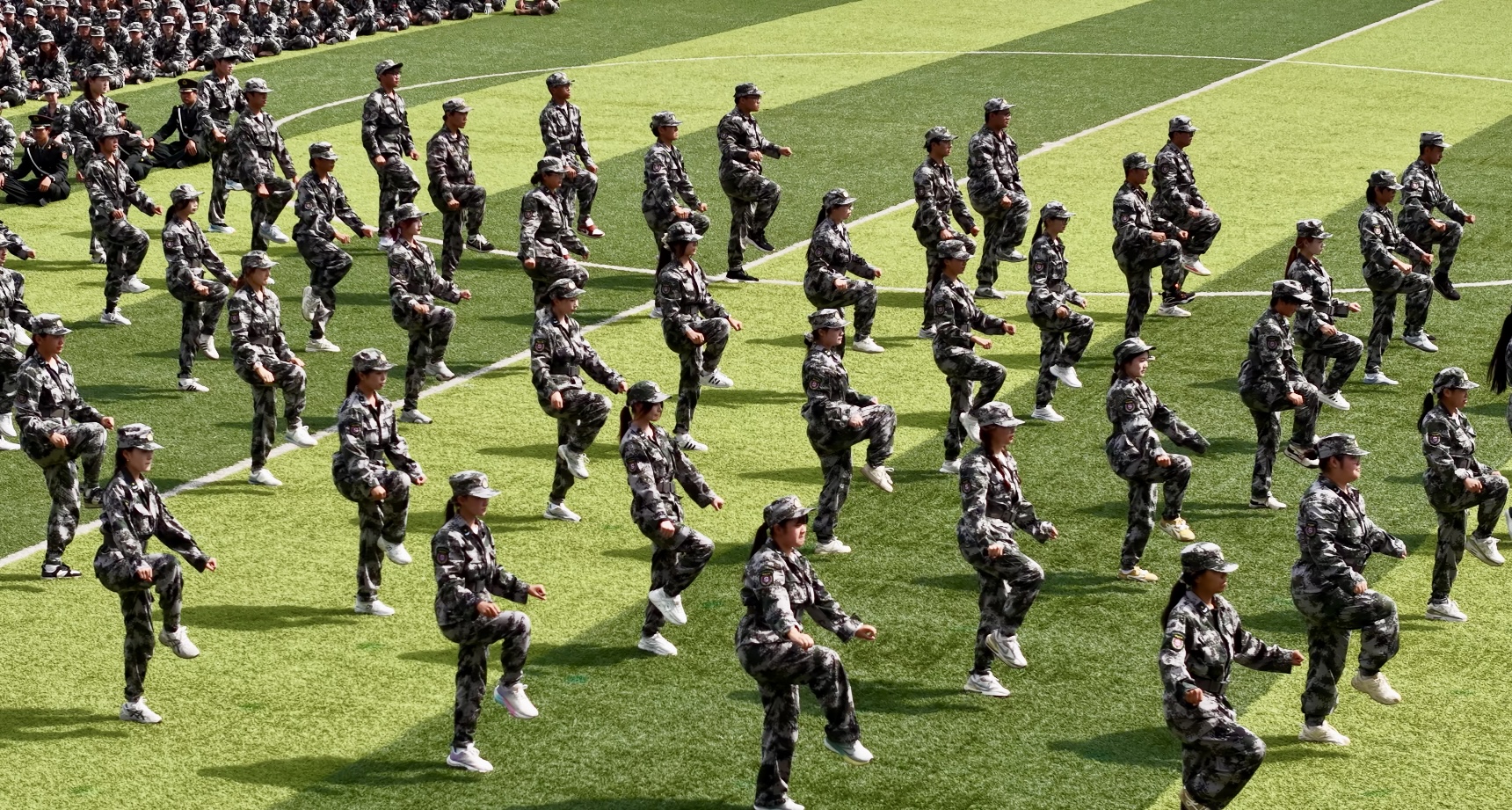 军训成果汇报环节亮点纷呈,格斗术方阵拳脚生风,尽显青春力量;会操比赛中拔得头筹的男女生代表队动作整齐划一,口号震彻蓝天;国旗护卫队再次登场,以挺拔身姿与坚定眼神诠释纪律担当。14天的烈日与风雨洗礼,让新生们将汗水化作成果,其锐意进取、团结向上的精神风貌打动在场众人。现场掌声阵阵,既是对他们努力的肯定,更是对青春奋斗的礼赞。