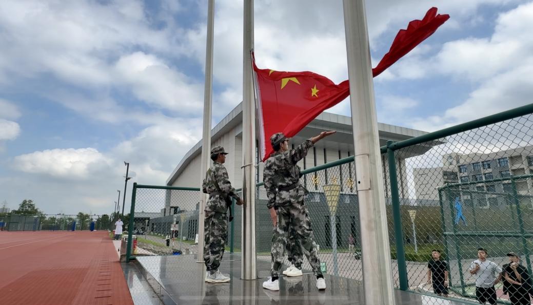 国旗护卫队队员身着制服,英姿飒爽,迈着铿锵有力的步伐护送国旗入场。伴随雄壮的《义勇军进行曲》,鲜艳的五星红旗冉冉升起,全场师生肃立注目,以青春朝气与昂扬姿态,开启本次闭营仪式暨开学典礼。