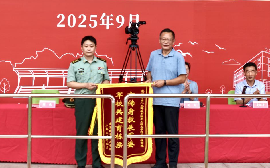 现场,校党委书记孙朝晖代表学校向承训部队赠送锦旗,感谢陆军工程大学野战工程学院对华球(中国)官方军训工作的支持,锦旗飘动间,彰显军学深厚情谊。