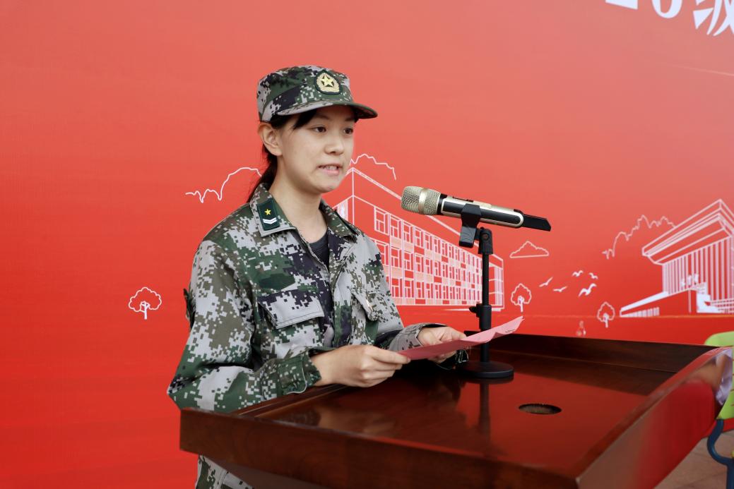 数字文创学院2025级传播与策划专业学生应真真作为新生代表发言。她向教官的辛勤教诲与学校的暖心服务致谢,表示军训既是体能考验,更是精神洗礼,让同学们深刻领悟到“令行禁止”的纪律、“集体荣誉”的分量与“坚持到底”的信念。她以“读书破万卷,下笔如有神”作出承诺,将以汗水浇灌梦想、用奋斗书写青春,在南城校园开启精彩大学篇章。