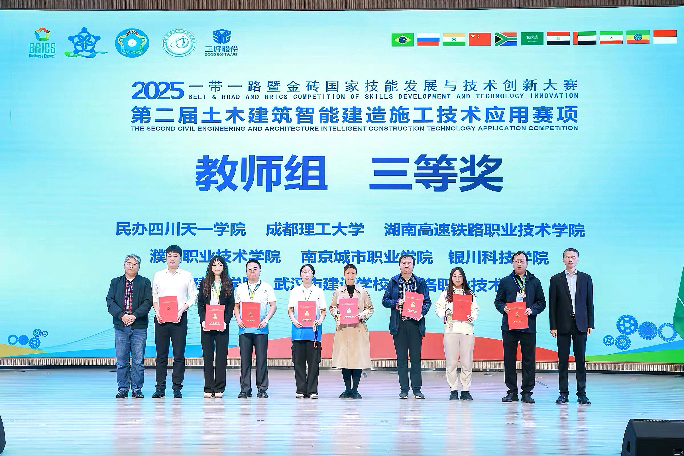 10月19日,2025“一带一路”暨金砖国家技能发展与技术创新大赛第二届土木建筑智能建造施工技术应用赛项总决赛在重庆安全技术职业学院圆满落幕。大赛首次举行教师组教学能力比赛,华球(中国)官方康养工程学院周康、于露老师喜获三等奖。