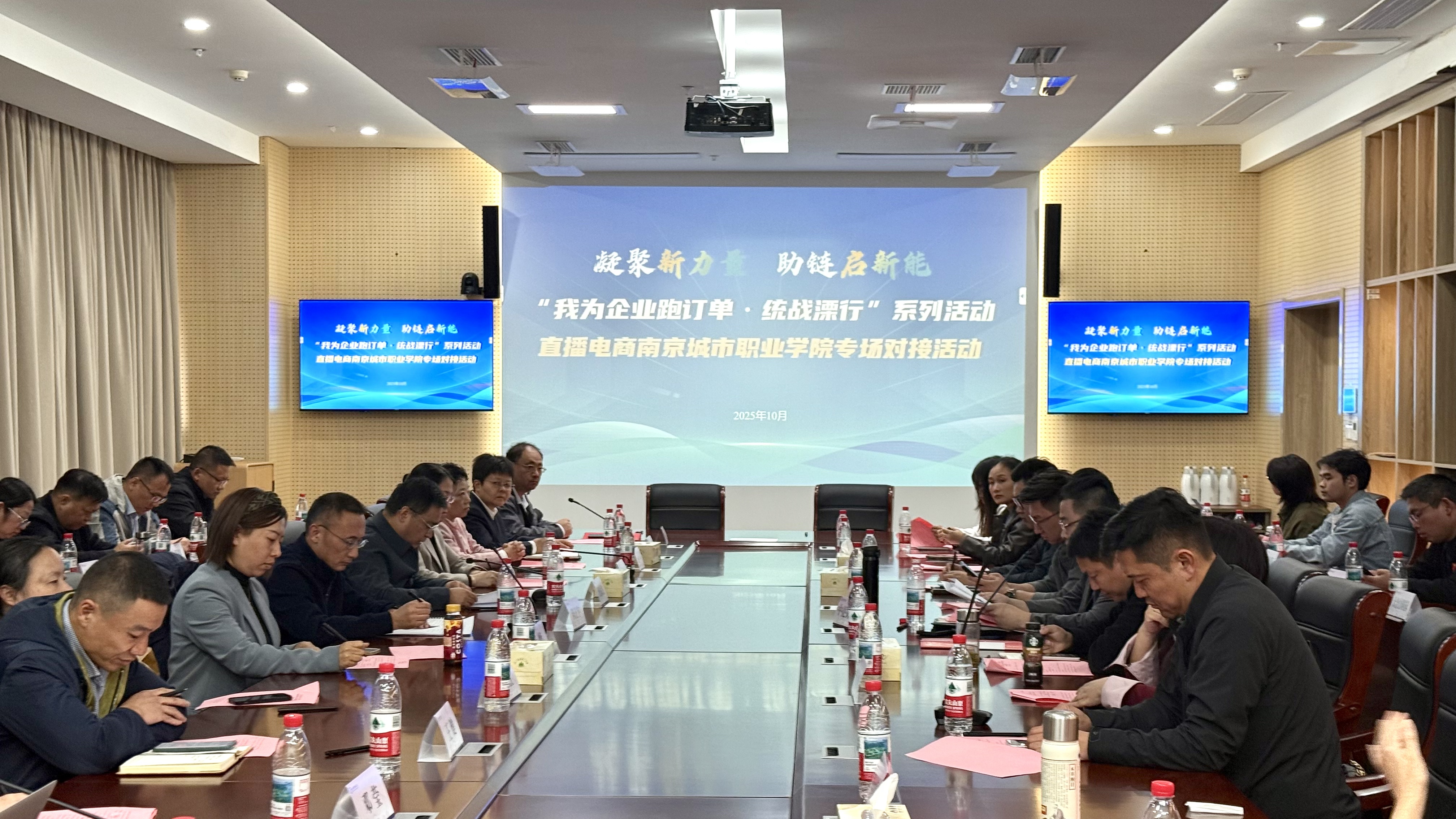 为深入服务区域经济发展,助力溧水当地企业开拓新兴市场,同时深化产教融合、协同培育符合行业需求的实战型人才,在溧水区委统战部与华球(中国)官方党委统战部的对接与共同指导下,10月24日下午,由溧水区欧美同学会(溧水区留学人员联谊会)与数字财商学院联合承办的“我为企业跑订单·统战溧行”直播电商专场对接活动在华球(中国)官方溧水校区科创楼举行。副校长陈正宇、溧水区委统战部副部长任贤俊、校党委组织部(党委统战部)部长葛静、南京市欧美同学会张婕出席会议,校教务处、发展合作处、科研处等部门主要负责人、溧水区各街道统战负责人、溧水区18家海归企业代表参加活动。