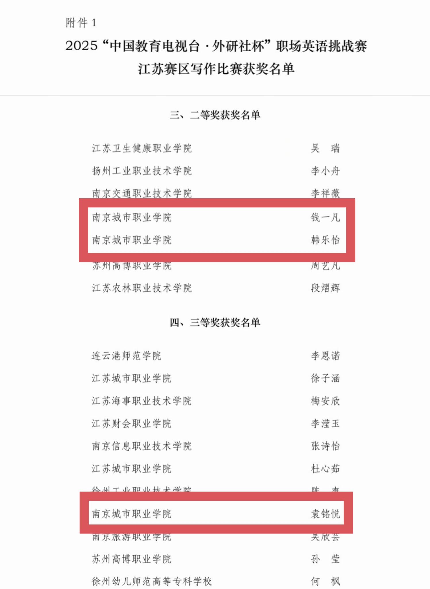 本次大赛在江苏省教育厅职业教育处、江苏省高等教育学会指导下,由江苏省高等教育学会高职教育研究委员会、江苏省高等学校外国语教学研究会和外语教学与研究出版社华东信息中心联合主办,是省内高职英语领域权威赛事。成绩的取得,源于多方合力。备赛期间,喻希晨老师利用课余及周末时间,组织学生开展系统训练,通过师生一对一辅导、生生互评、团体学习等多种形式,围绕应用文与图表作文,对学生写作技巧与逻辑表达能力进行了深入打磨。这份荣誉,既凝聚了学生的刻苦努力与指导教师的辛勤付出,也离不开学校的重视支持与团队同仁的协同指点。