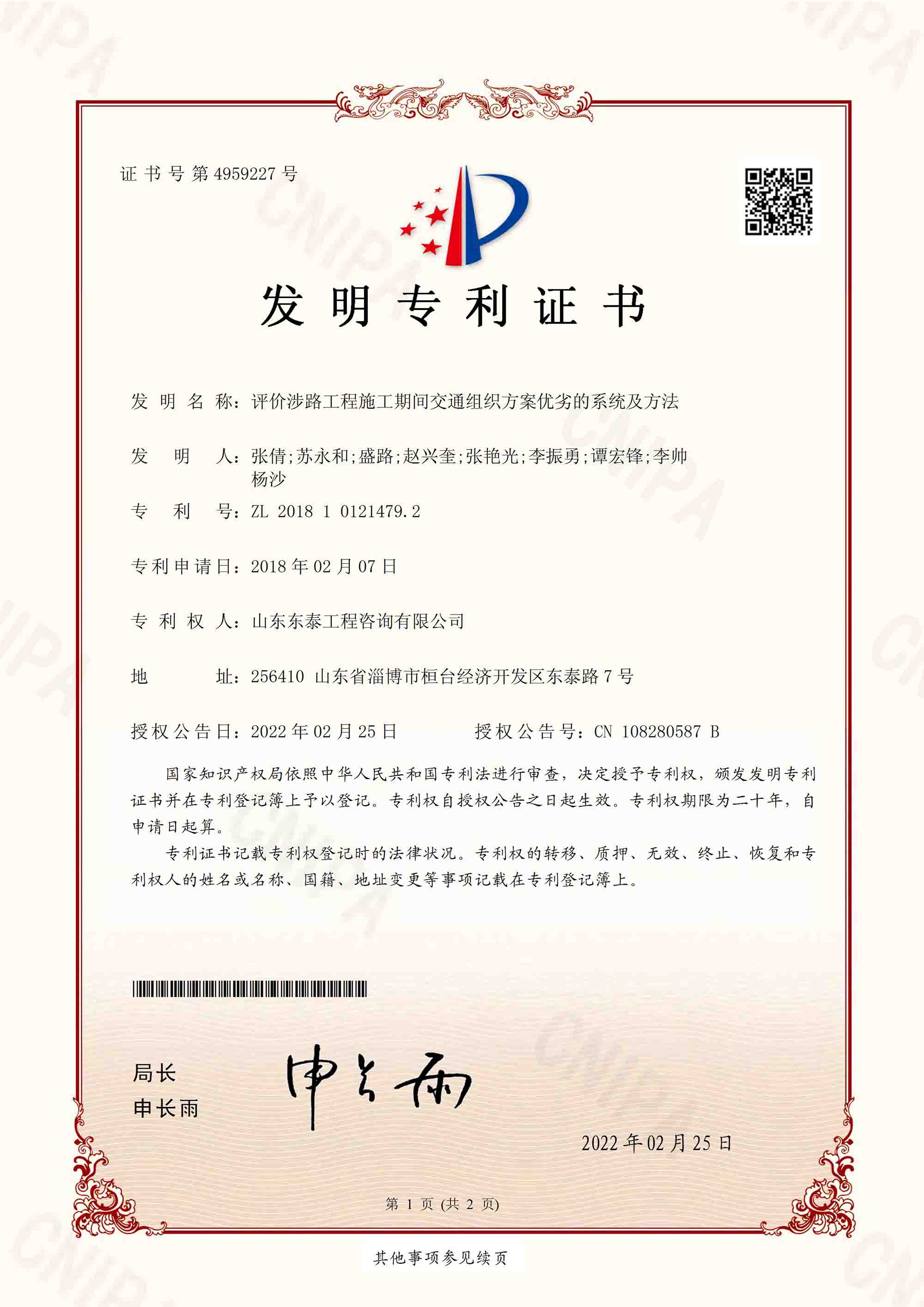 发明专利:评价涉路工程施工期间交通组织方案优劣的系统及方法