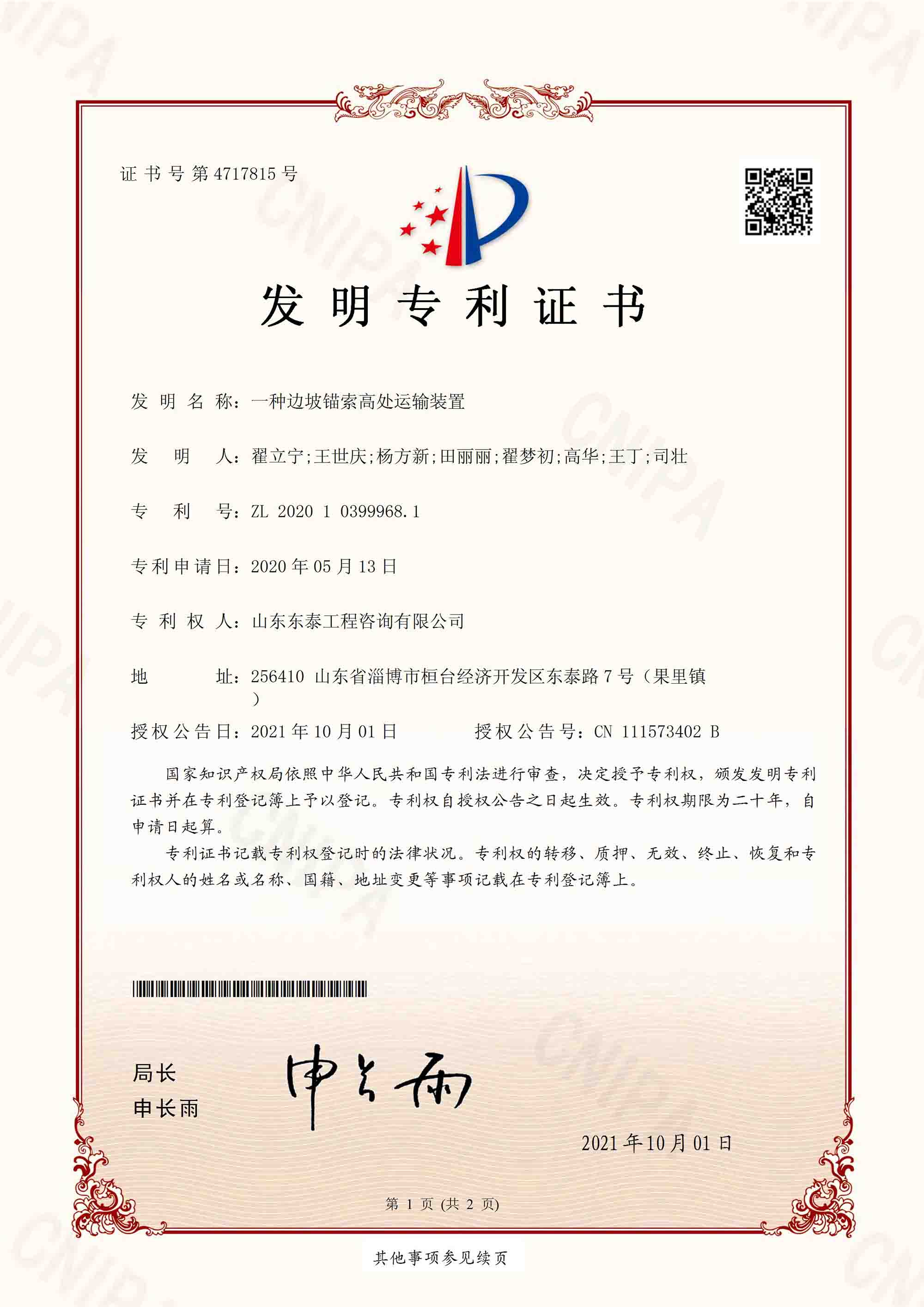 article------>{"id":6507,"cid":10,"subCid":"","title":"发明专利:一种边坡锚索高处运输装置","shortTitle":"","tagId":"","attr":"","articleView":"","source":"","author":"","description":"...","img":"/public/uploads/default/2024/12/31/1735620279792_source_190021发明:一种边坡锚索高处运输装置.jpg","content":"<p style=\"text-align: center;\"><img src=\"/public/uploads/default/2024/12/31/1735620286000_source_mceu_89229618151735620277608.jpg\"></p>","orderBy":null,"status":0,"pv":591,"link":"","createdAt":"2024-11-01 00:00:00","updatedAt":"2025-07-28 17:14:59","department":null,"field":{},"tags":[]}