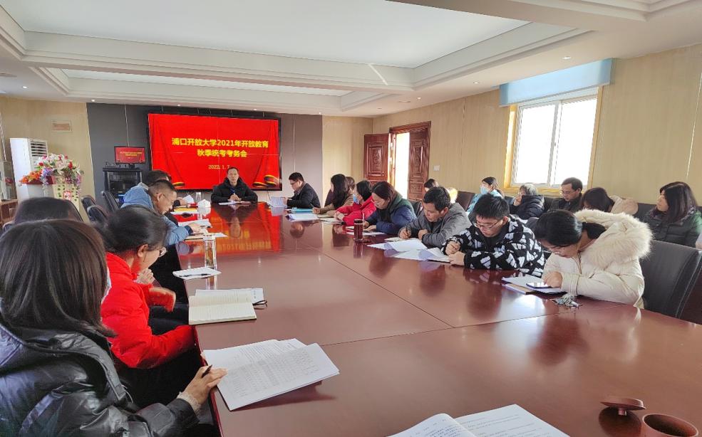 为进一步加强考试管理,严肃考风考纪,保障21秋季期末考试考试平稳顺利进行,2022年1月7日上午,浦口开放大学在学校三楼会议室,召开了21秋开放教育期末考试考务工作会。学校王永成校长,徐有龙书记,徐宁副校长,开放教务科万荣科长,各科室负责人及全体教师参加了会议。