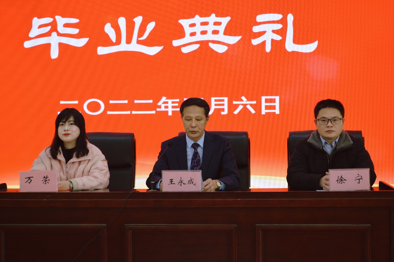 浦口开放大学王永成校长在致辞中代表学校向全体毕业生表示衷心祝贺!对学员们克服工学矛盾,坚持学习并顺利毕业的可贵精神表示由衷的敬佩!对为学员们提供教学和服务的老师们表示崇高的敬意!对学员们即将开启新的人生旅程给予祝福!莘莘学子辞远行,漫漫征途建功名。举办毕业典礼,既是对学员们辛勤付出、刻苦学习,在规定时间内完成学业的美好纪念,也是对学员们不忘初心使命,重整行装再出发的殷切期望。