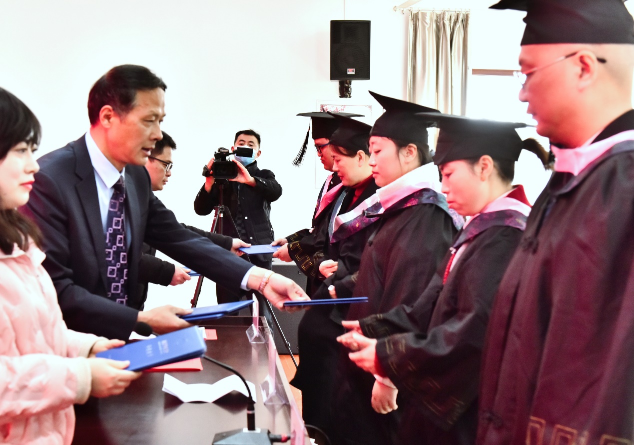 浦口开放大学王永成校长在致辞中代表学校向全体毕业生表示衷心祝贺!对学员们克服工学矛盾,坚持学习并顺利毕业的可贵精神表示由衷的敬佩!对为学员们提供教学和服务的老师们表示崇高的敬意!对学员们即将开启新的人生旅程给予祝福!莘莘学子辞远行,漫漫征途建功名。举办毕业典礼,既是对学员们辛勤付出、刻苦学习,在规定时间内完成学业的美好纪念,也是对学员们不忘初心使命,重整行装再出发的殷切期望。