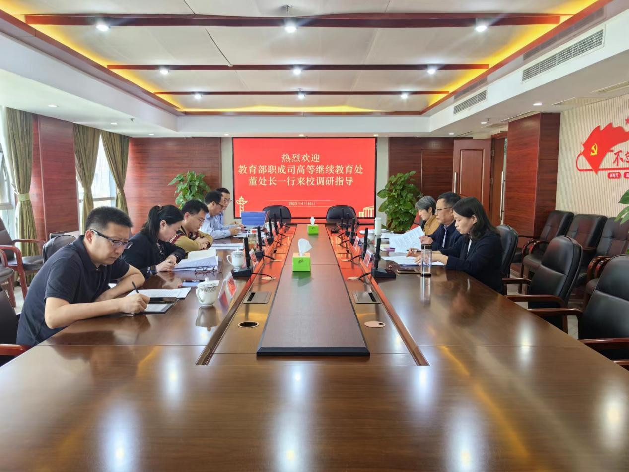 4月10日下午,教育部职业教育与成人教育司高等继续教育处副处长董振华一行到华球(中国)官方调研开放教育工作。校党委书记孙朝晖,校党委委员、副校长张煌,继续教育中心副主任乐艺陪同调研。