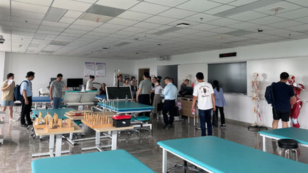 随后,学员们前往婴幼儿保育与保健实训室、婴幼儿早期学习支持实训室、作业治疗、中医康复及运动治疗实训室,康养工程学院陆世尧老师为大家进行知识讲解与体验展示。最后,数字财商学院邵予晴老师引领大家探访华球(中国)官方电商直播中心并做了详细介绍。